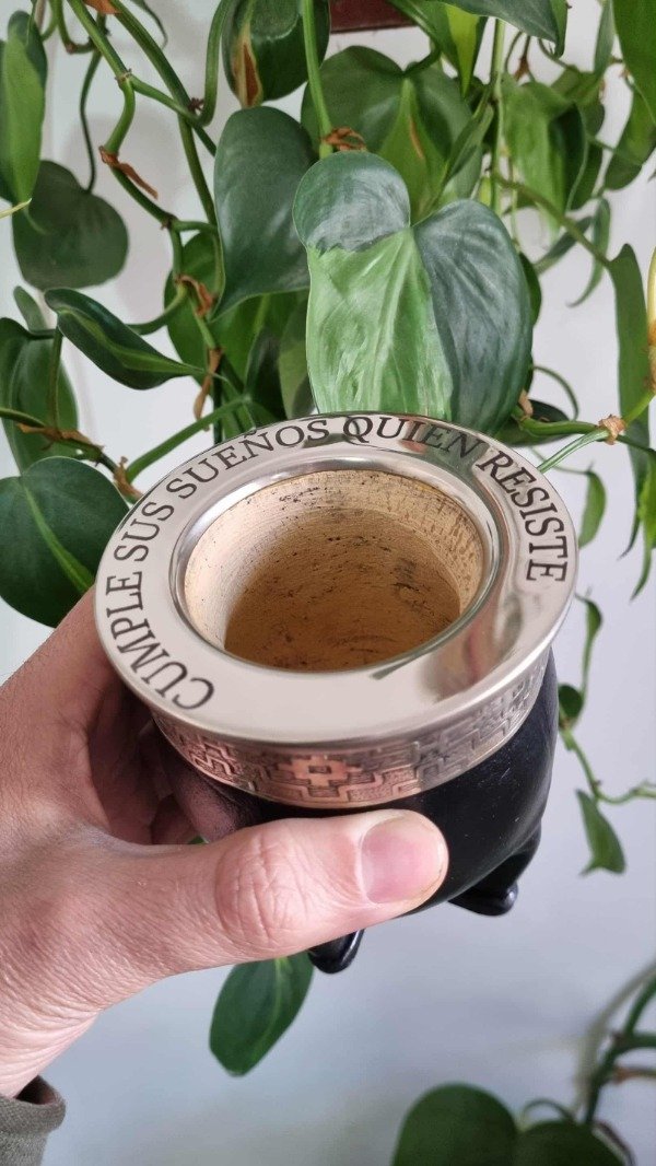 Mate imperial de calabaza brasileña forrada en cuero vacuno con virola de alpaca PERSONALIZADA